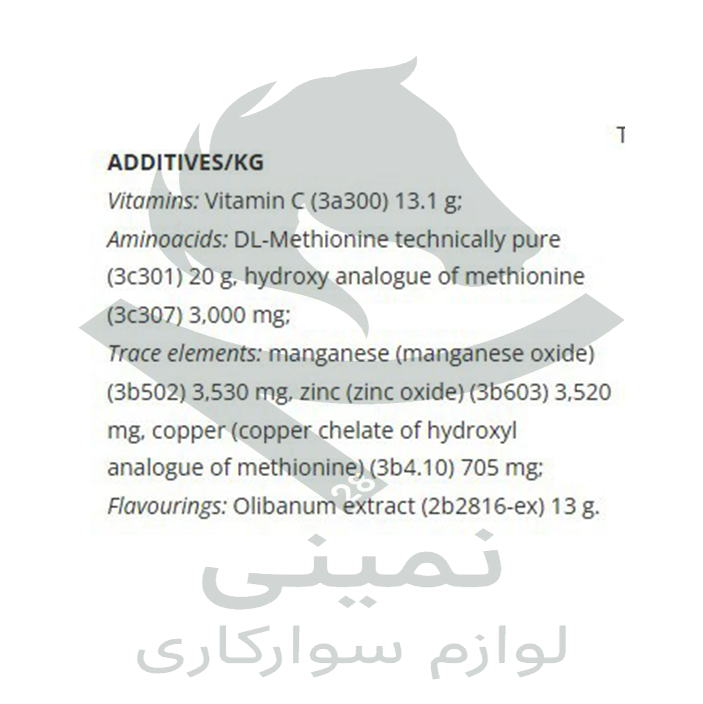 60 گرم به ازای هر 500 کیلو گرم از وزن اسب |