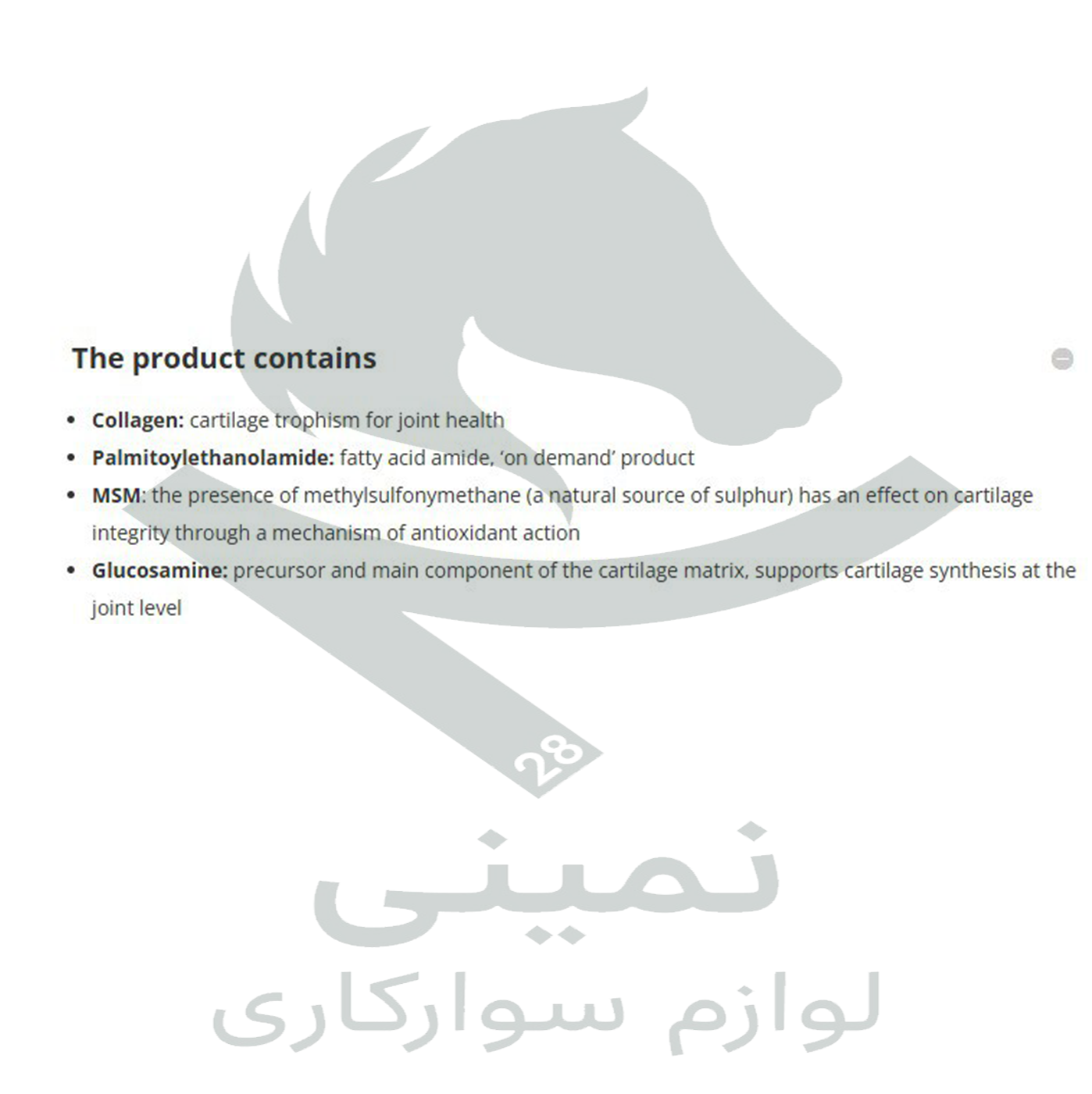 (Equality Myristol) یک مکمل تخصصی برای اسبها است که به حمایت از سلامت مفاصل و کاهش دردهای مفصلی کمک میکند. این محصول با فرمولاسیون خاص خود و یک ترکیب طبیعی به کاهش التهاب و بهبود حرکت مفاصل اسبها کمک کرده و از بروز مشکلات مفصلی در اسبهای جوان یا مسن جلوگیری میکند. (Myristol) به عنوان یک مکمل پیشگیرانه و درمانی، به حفظ عملکرد مناسب مفاصل اسبها در فعالیتهای روزانه و ورزشی کمک میکند.