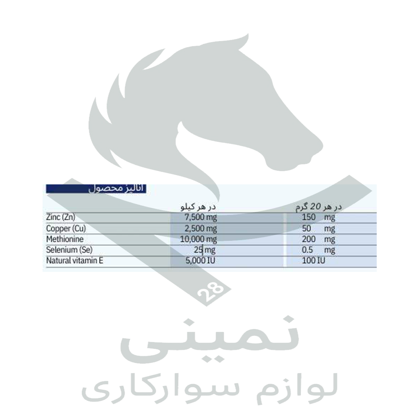 این محصول یک مکمل چند منظوره است که علاوه بر بهبود زخم‌ها برای تقویت سیستم ایمنی اسب نیز بسیار مفید است.